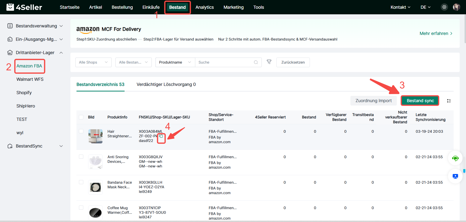 Schritt 5. FBA‑Bestand synchronisieren und SKUs zuordnen