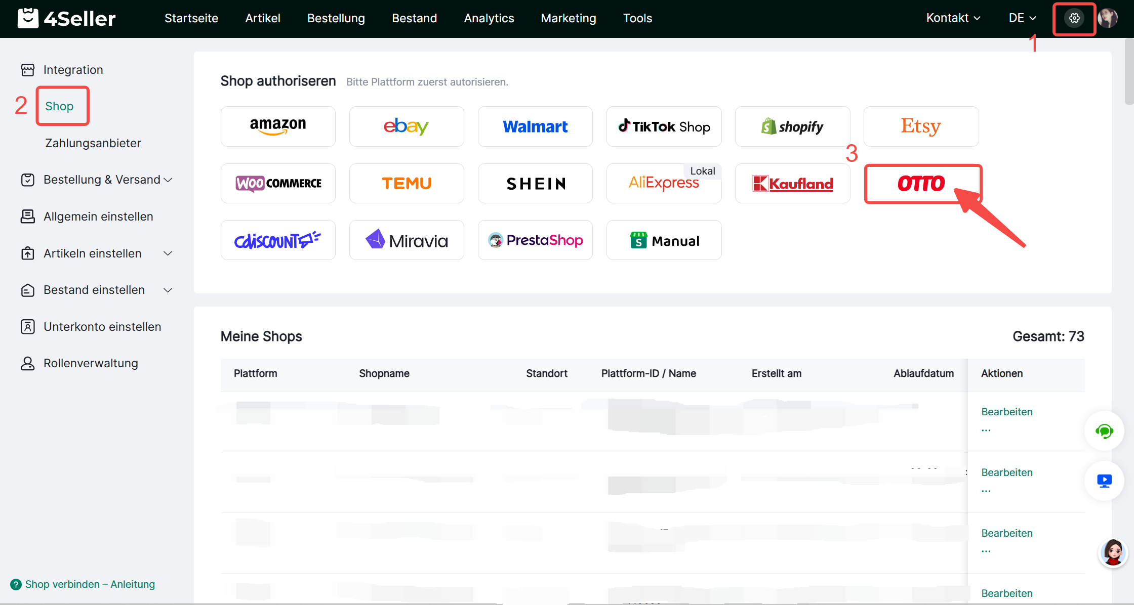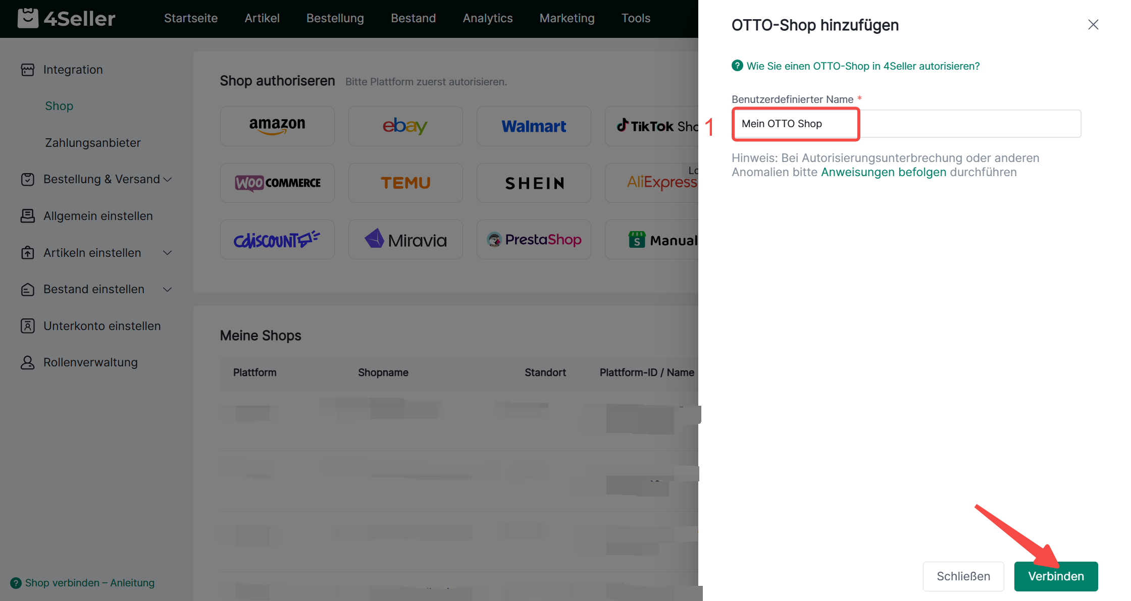 Schritt 1: OTTO-Shop mit 4Seller verbinden