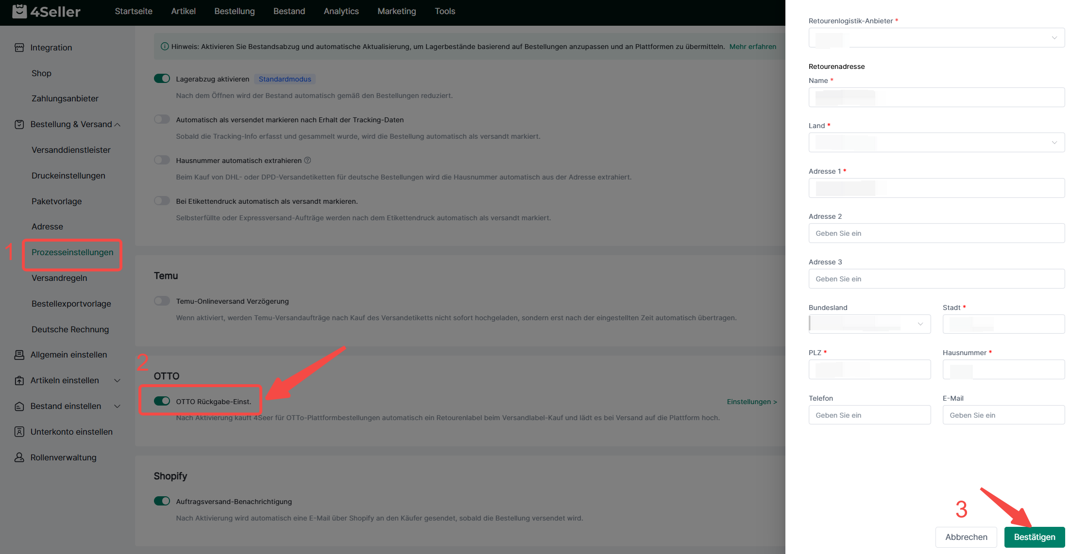 Methode 2: Automatische Erstellung von Rücksendeetiketten über das 4Seller ERP-System