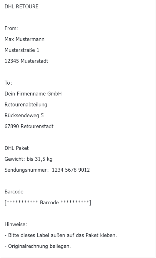 Was sollte eine standardisierte DHL-Rücksendeetiketten-Vorlage enthalten?