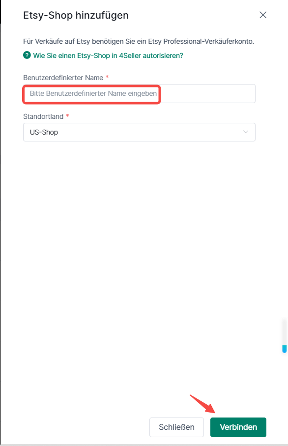 Schritt 2: Gebe Benutzerdifinerter Name ein. Klicke auf Verbinden.