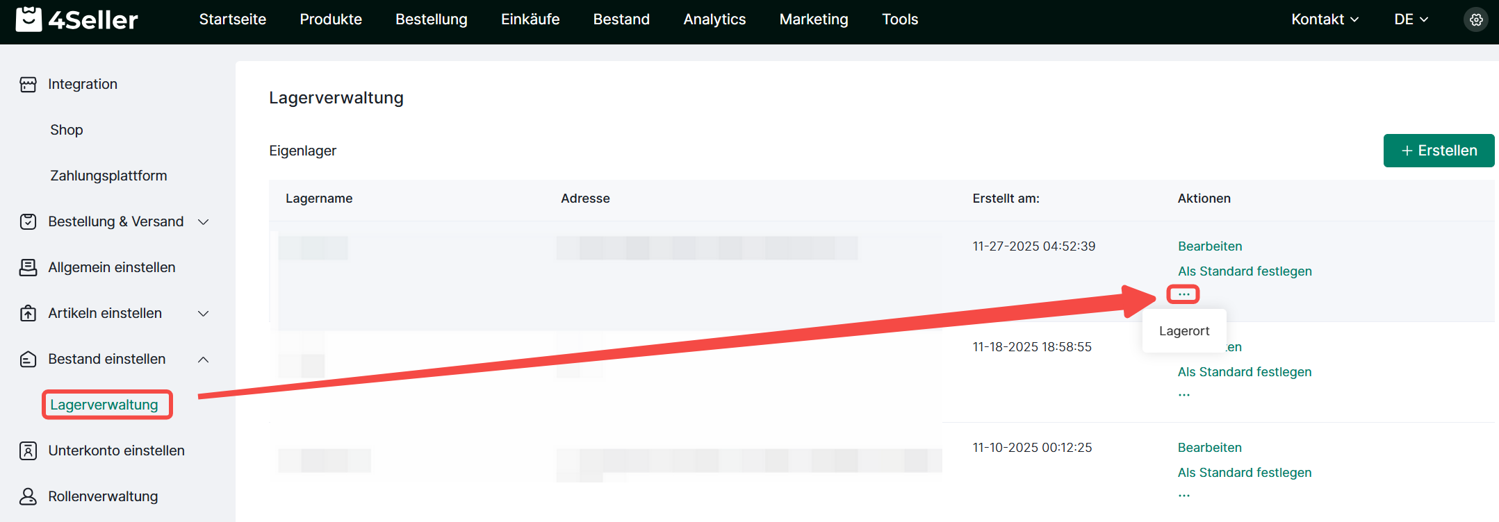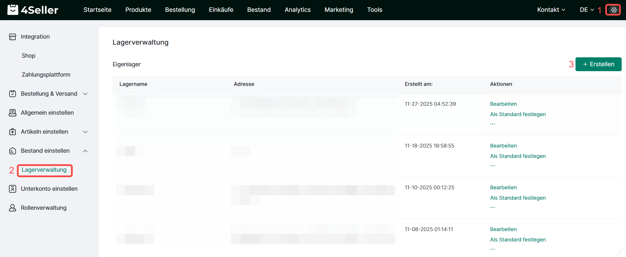 1. Wie richte ich ein Lager ein?