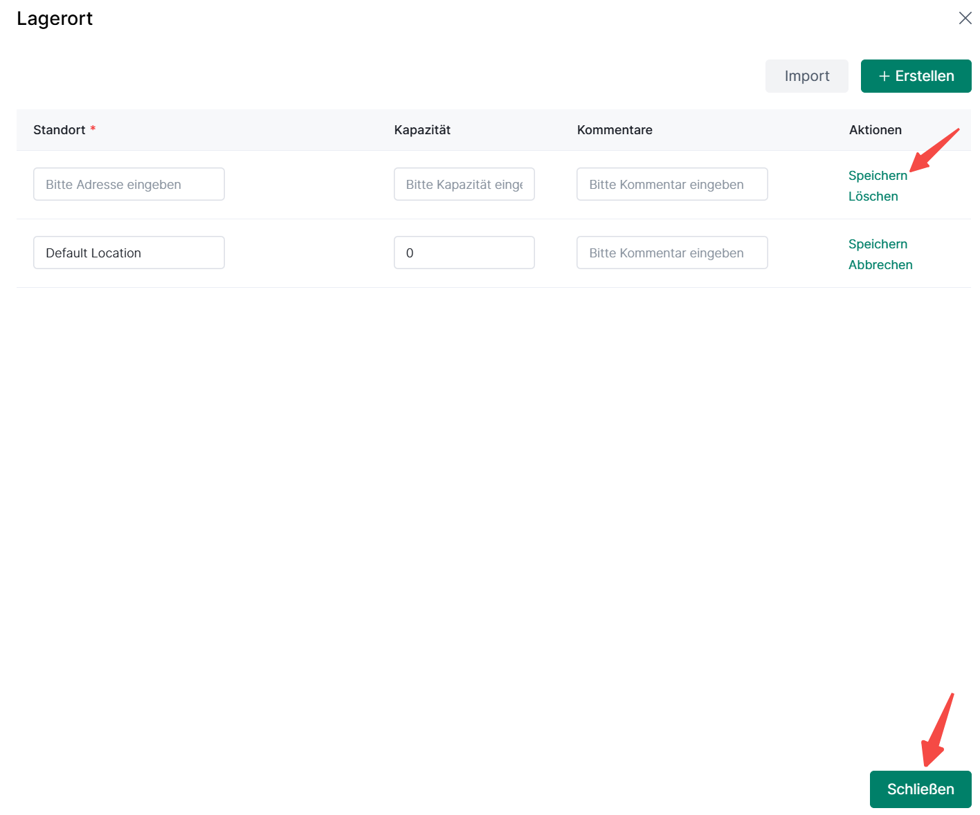 ② Füllen Sie die Adresse, Kapazität und Kommentare aus> Speichern