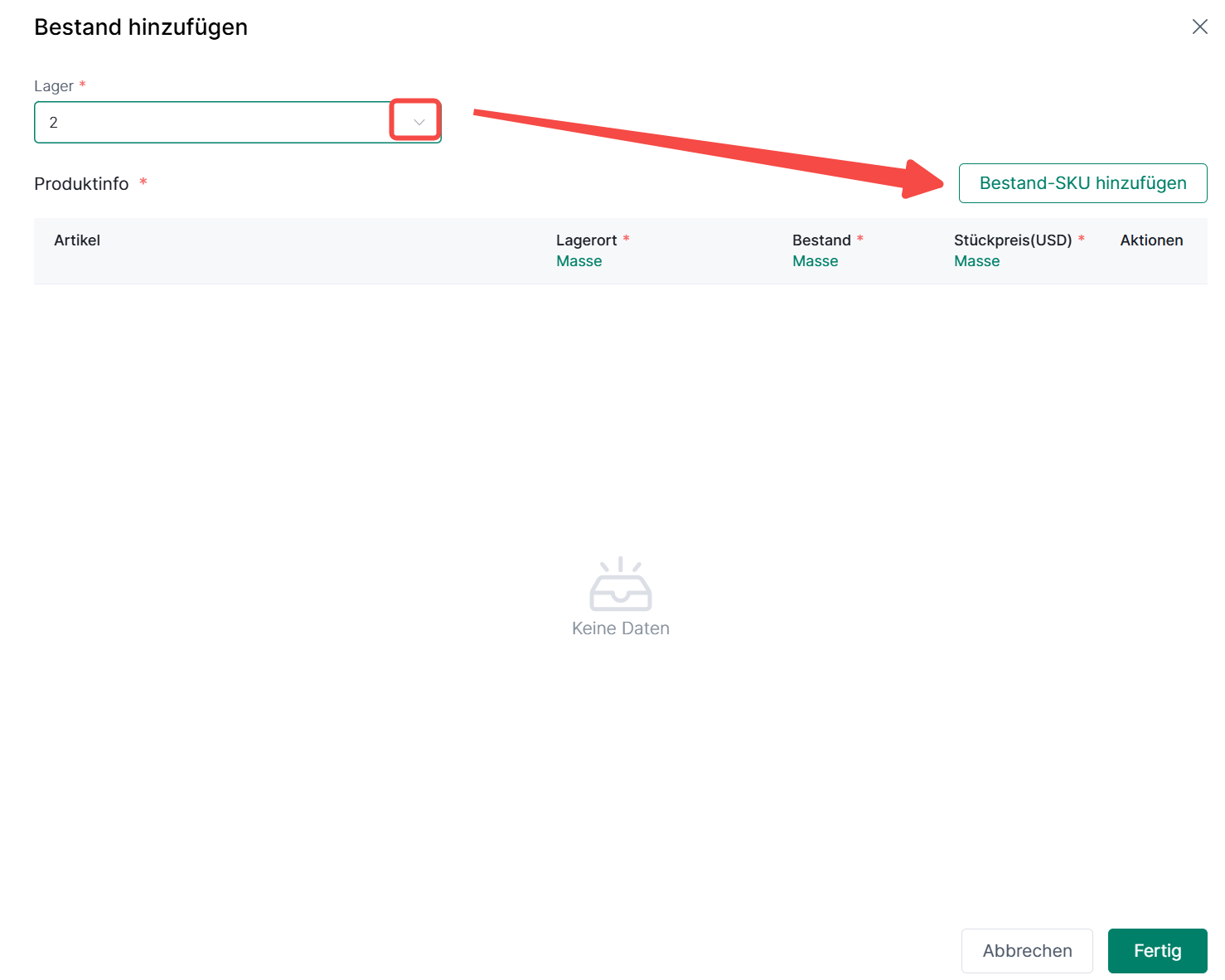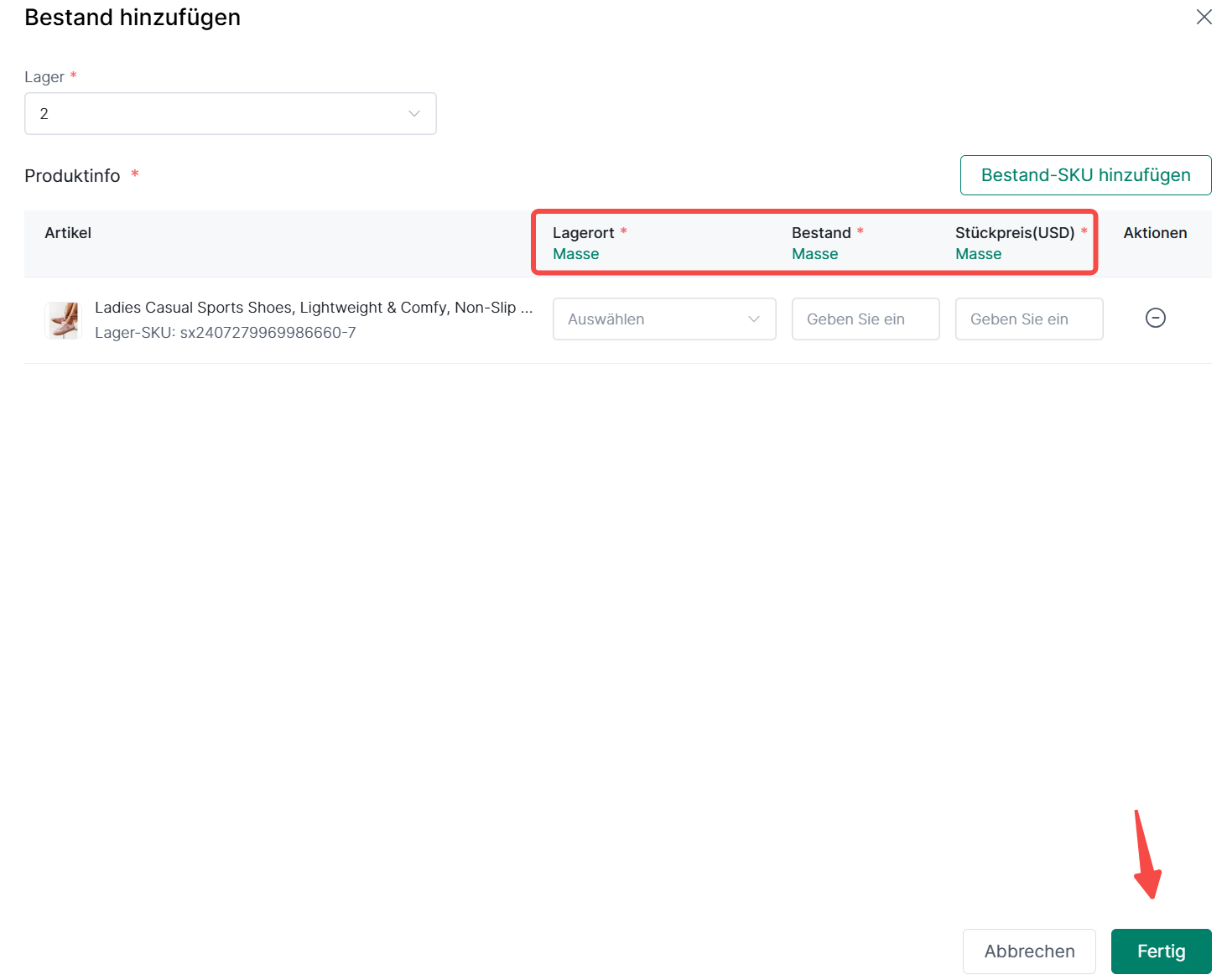 3. Wie füge ich einzeln SKU-Bestandsinformationen hinzu?