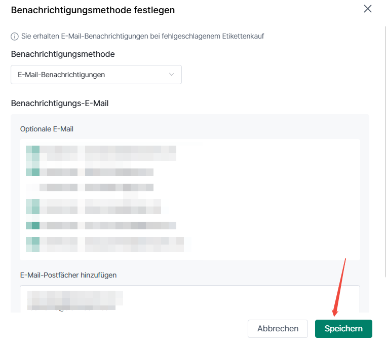 Hinweis 2: Fehler-E-Mail-Benachrichtigungen bei Versandetikett-Fehlkäufen