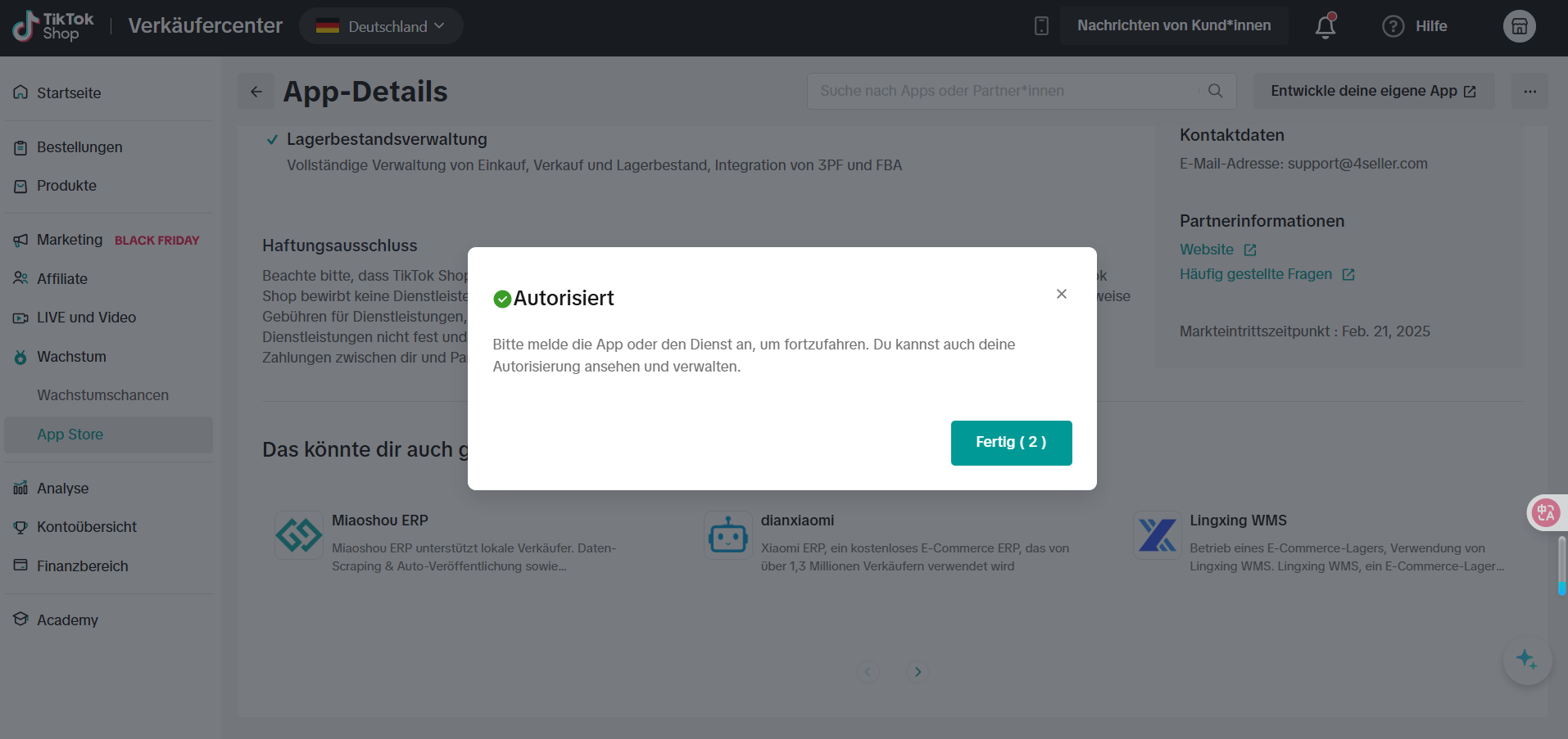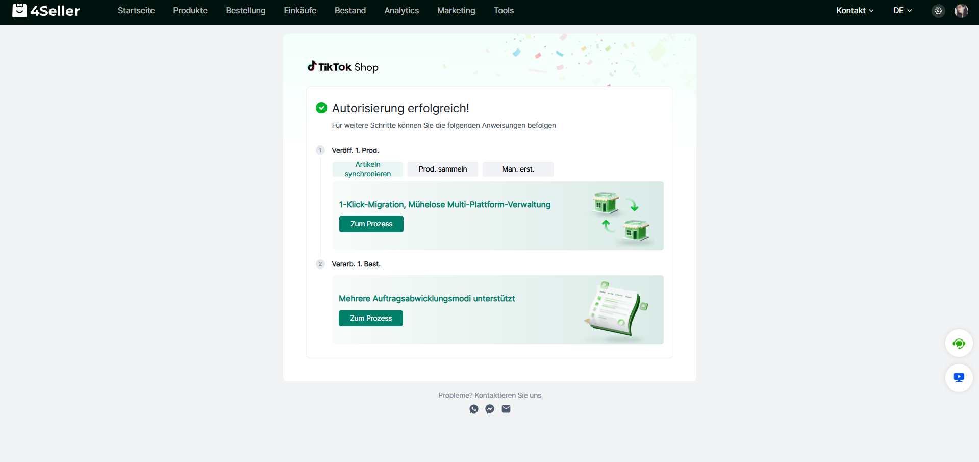 Herzlichen Gratulation, dass du diesen Punkt erreicht habst – Du hast deineTikTok-Shop-Konto erfolgreich für 4Seller autorisiert !