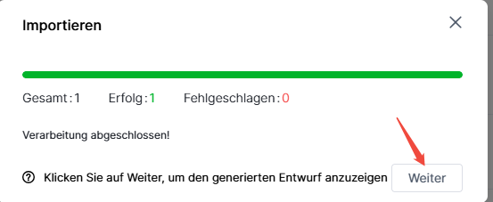 6. Klicken Sie auf „Weiter“, um die verschobenen Produkte zu prüfen. Entwürfe werden im Temu-Draft erstellt.