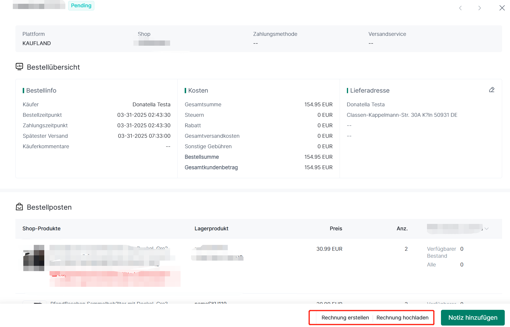 4Seller unterstützt jetzt die Erstellung von Kaufland- oder Shein-Rechnungen. Kaufland-Rechnungen können automatisch beim Versand hochgeladen werden, Shein-Rechnungen können generiert, heruntergeladen und gedruckt werden.