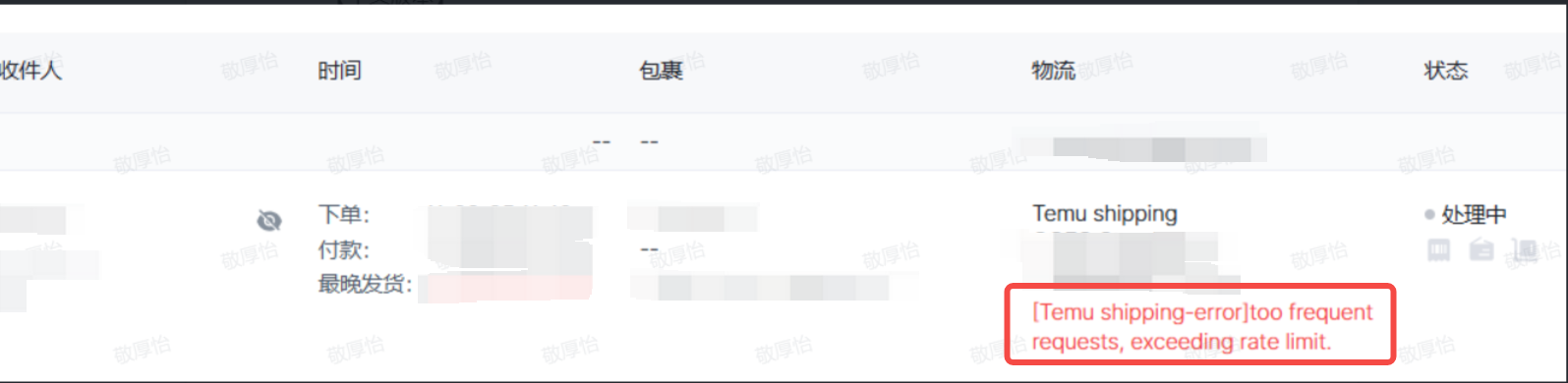 Wenn du mehrere Bestellungen gleichzeitig bearbeitest, kann diese Fehlermeldung auftreten: [Temu shipping-errorltoo frequent requests, exceeding rate limit. In diesem Fall solltest du etwa eine Stunde warten und es dann erneut versuchen.