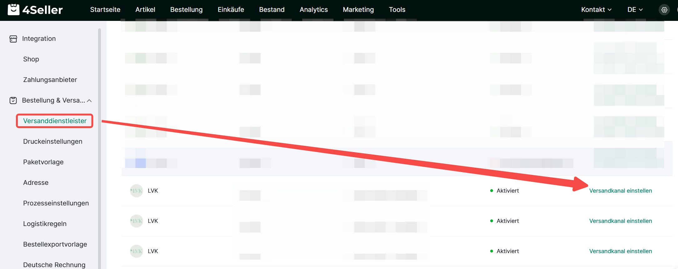 (1) Versanddienstleister - Drittanbieter-Lagerlogistik - Versandkanal einstellen;