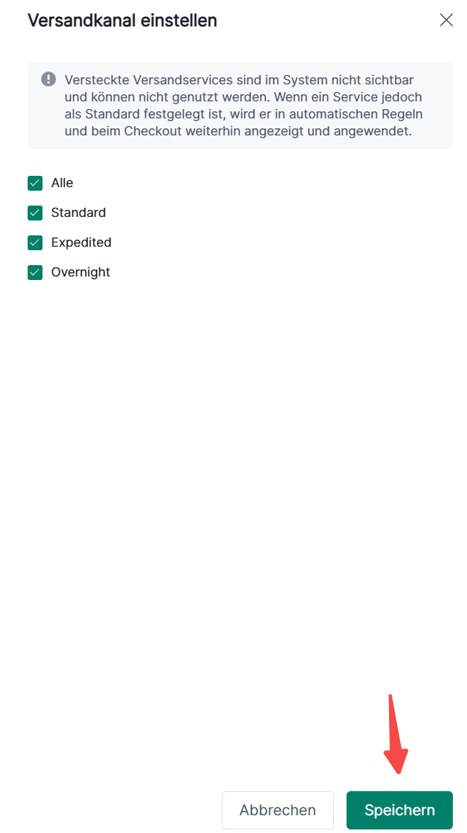 (2) Aktivieren Sie die gewünschten Logistikkanäle und klicken Sie auf Speichern.