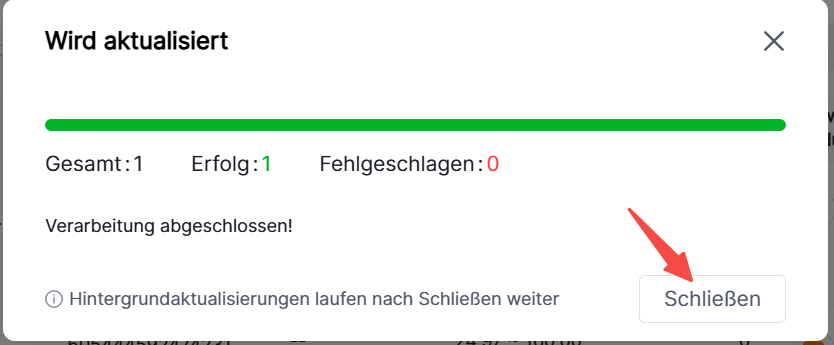 Schritt 4: Überprüfen Sie den grünen Balken, um das Aktualisierungsergebnis zu sehen