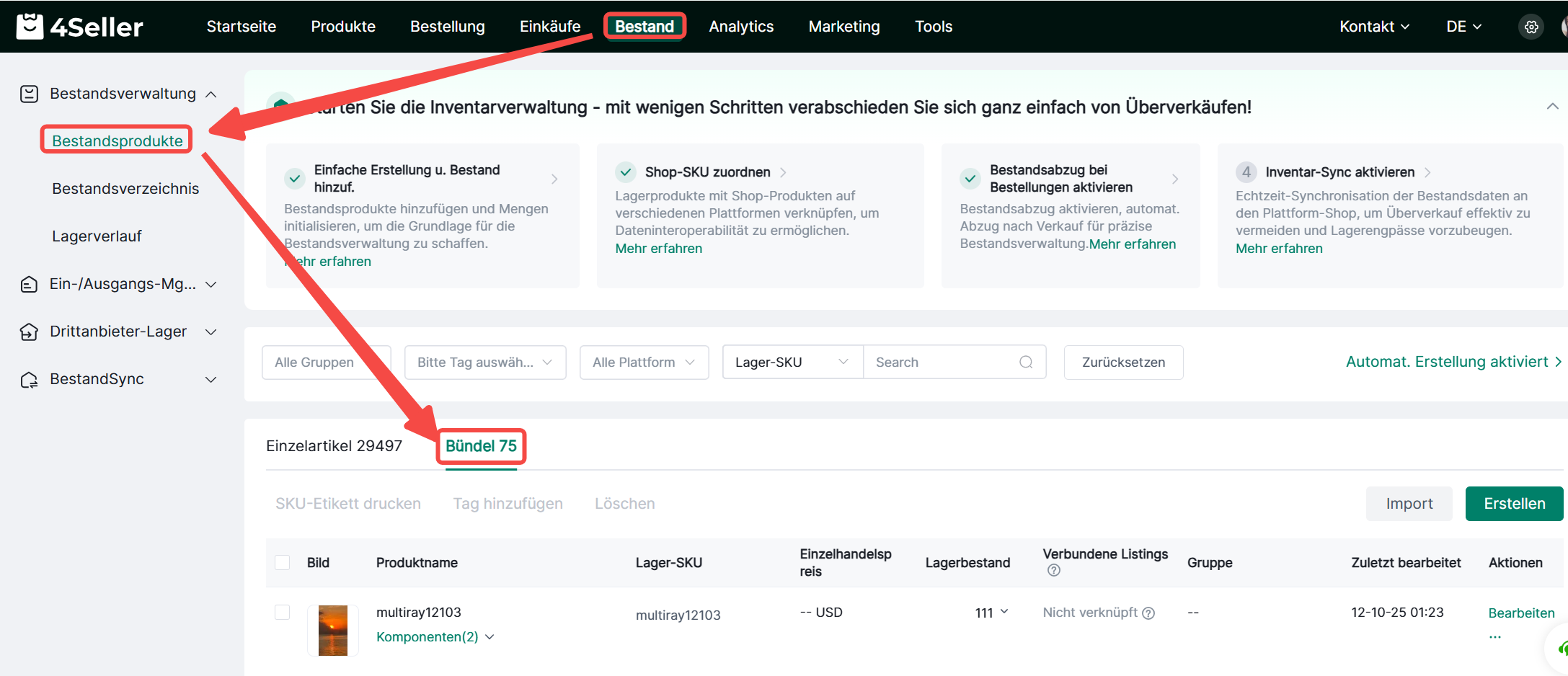 1. Lagerbestand-- Lagerprodukte-- Bundle--Erstellen
