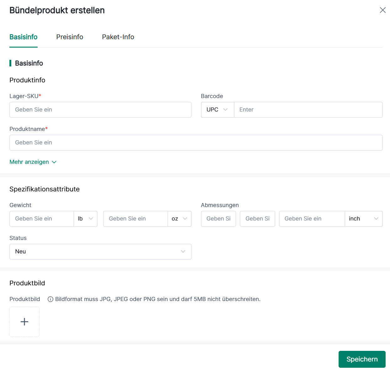 (1) Auf der Seite "Bundle-Produkt erstellen" können Sie Basisinformationen, Preisinformationen und Bundle-Informationen ausfüllen