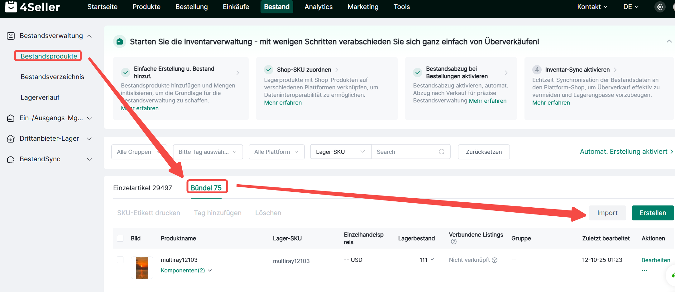 1. Lagerbestand--Lagerprodukte-- Bundle--Importieren