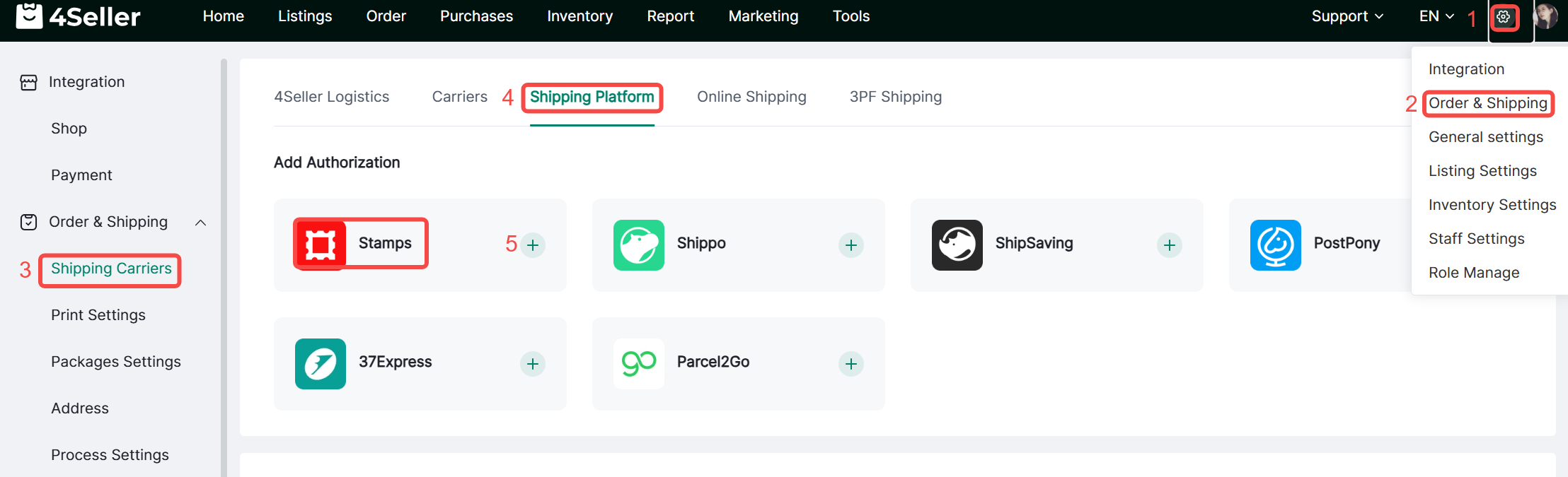 Connecting Stamps with 4Seller consist sellers quickly in completing shipping lable purchase and order fulfillment.
