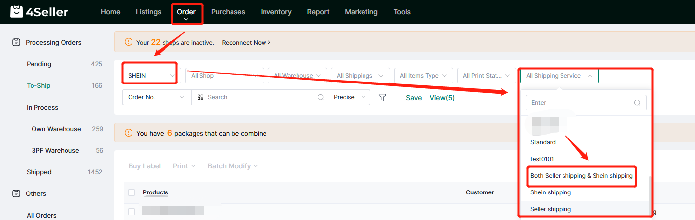 On the order page you can filiter Shein orders and the Both Seller shipping & Shein shipping type