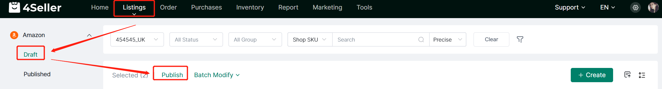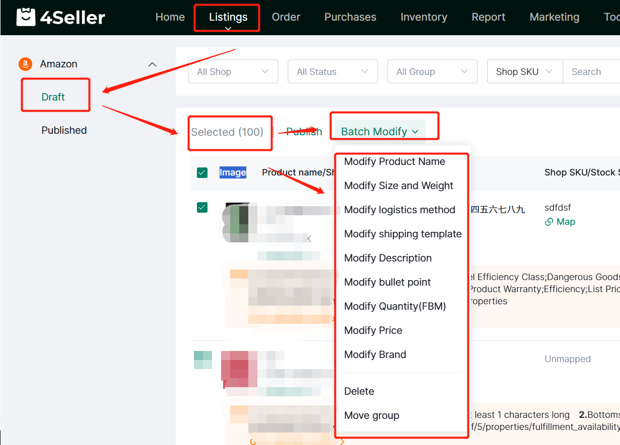 4Seller supports list products to Amazon store, which will improving listing efficiency!