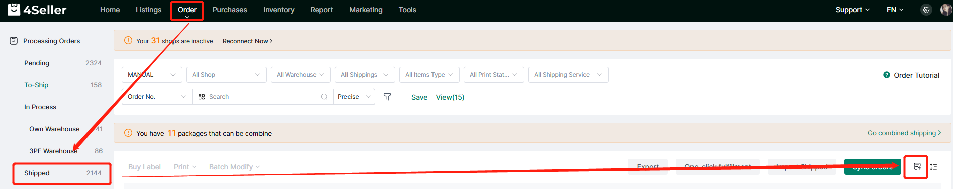 Printing history has been added to the top right corner of the To-ship,in process and shipped status, allowing you to view every printing operation (including labels, packing slips, and picking lists).