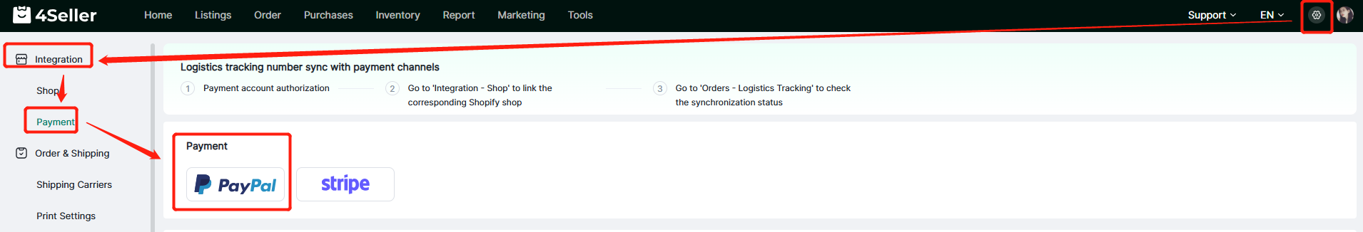 4Seller supports integration with PayPal accounts to accelerate payouts, minimize disputes & refunds and ebhance seller protection.