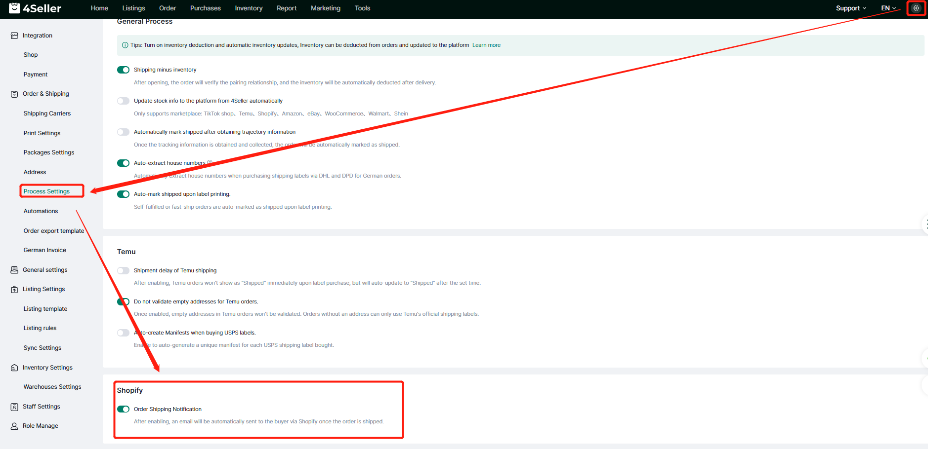 Step: Setting--Process Setting--Shopify--Open Order Shipping Notification