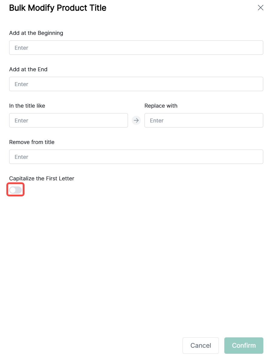 1. Batch modify product titles: Supports adding, replacing, or removing text at the beginning/end. Click Confirm.