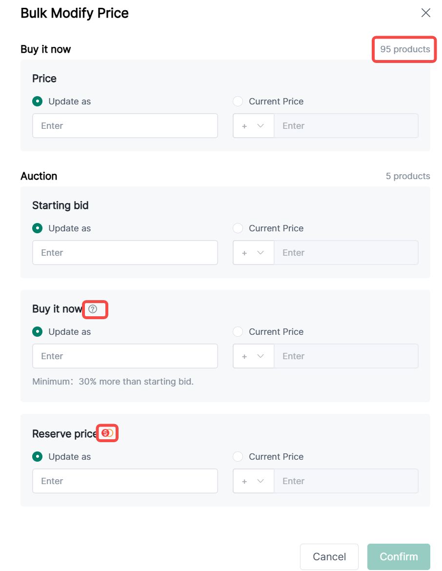 (4) For auction listings with both “Update as” starting bid and Buy It Now price set, the Buy It Now price must be ≥ 1.3 times the starting bid;