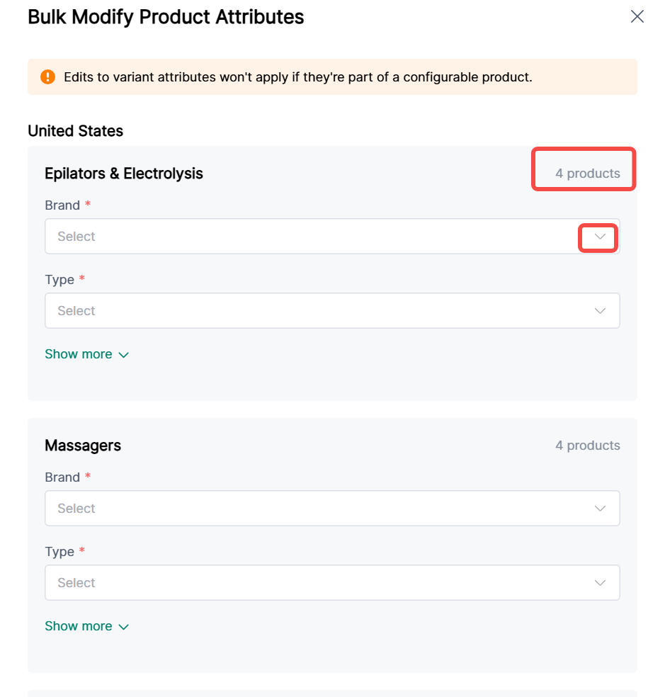 (2) If the edited attribute belongs to a variant attribute of a multi-variant product, the modification will not take effect