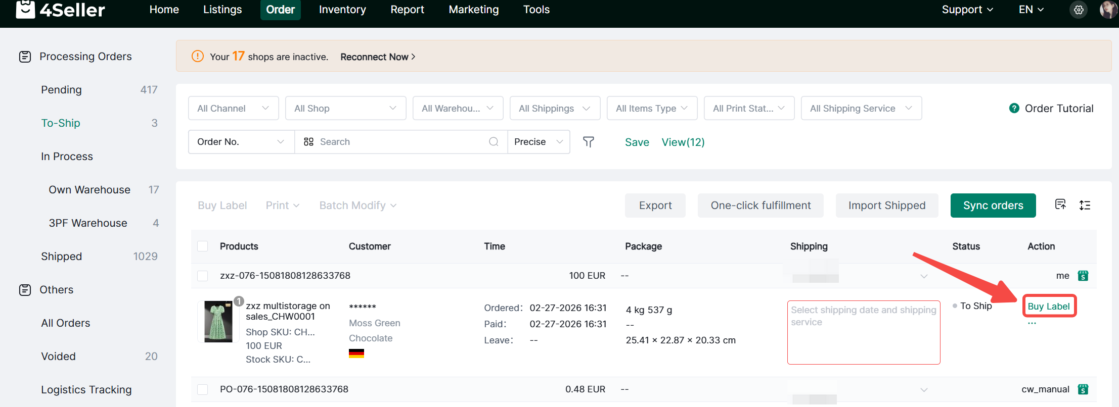 Simply click on the Buy Label of the order to enter the corresponding Buy Label page of the order.