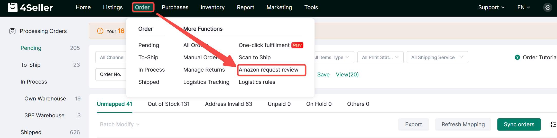 1. Access: Click Orders> Amazon Review Request