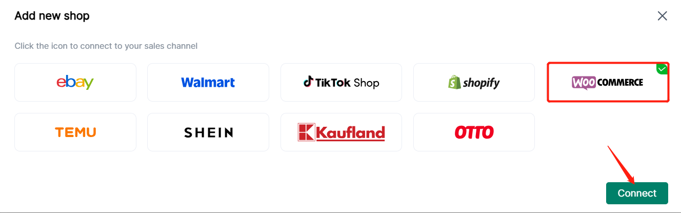 Step 1: Click the Woocommerce icon, and the page connecting the TikTok account will appear.