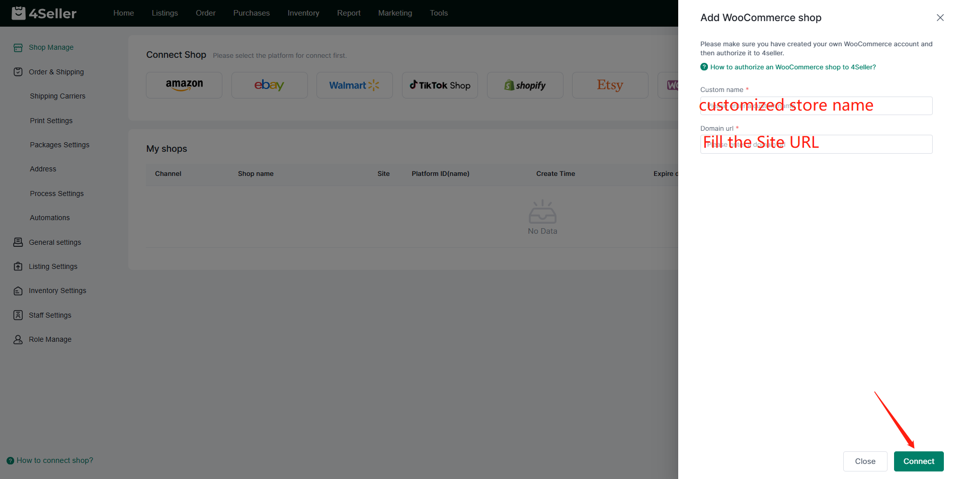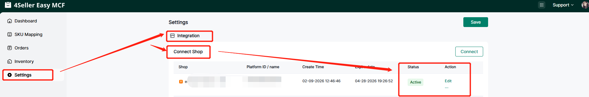 After successful shop authorization, you can check the shop authorization status on Setting page-- "Connect Shop" indicates that the authorized shop is successful, and you can then use 4Seller to complete online product synchronization, order processing, inventory synchronization, and other operations!