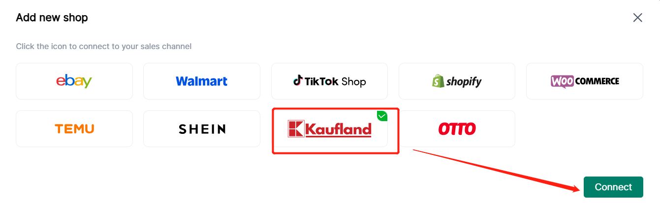 Step 2: Click the Kaufland store icon, and the page connecting the Kaufland account will appear.