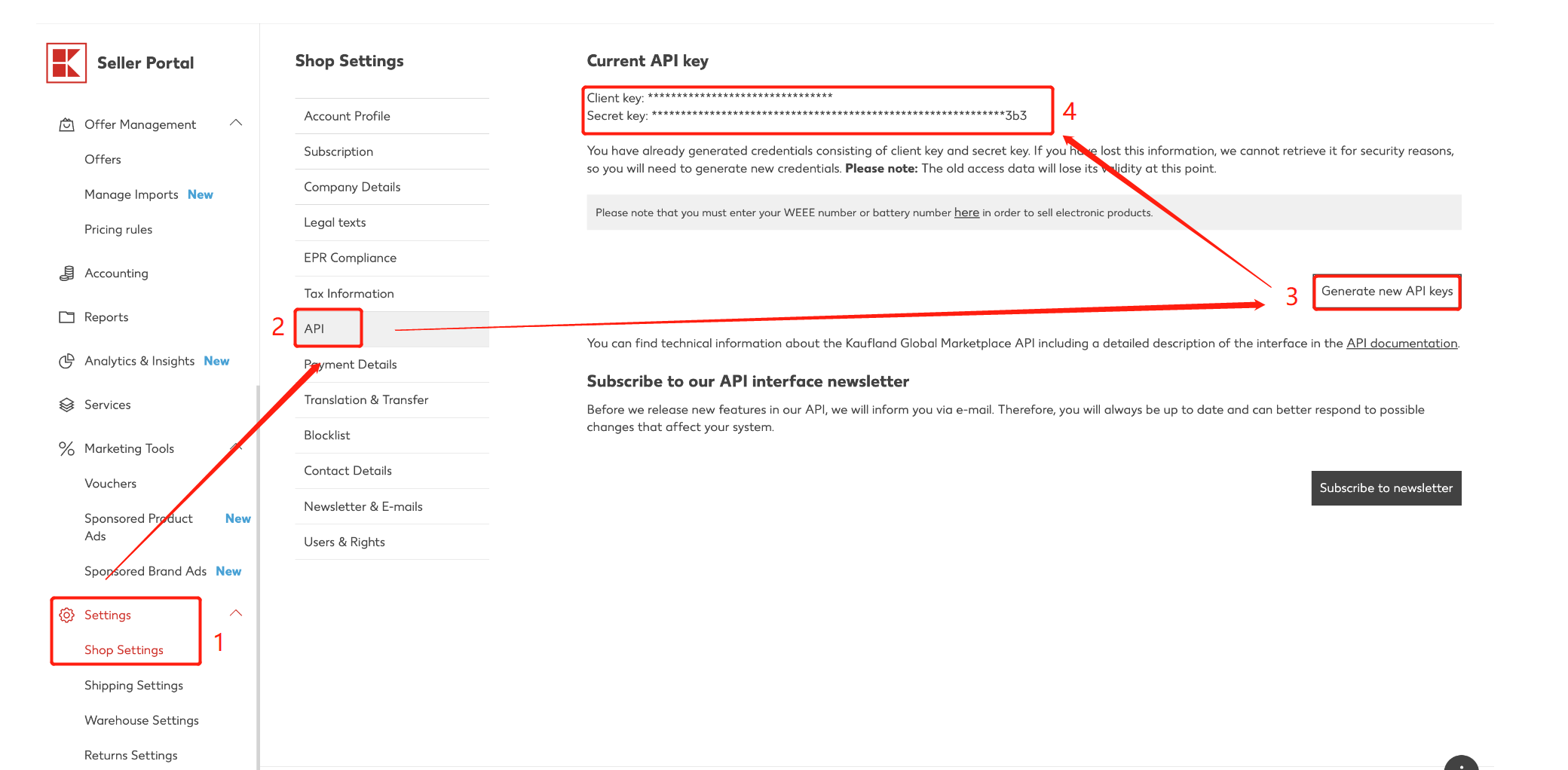 Step1: Log in Kaufland.de backend and obtain authorization information