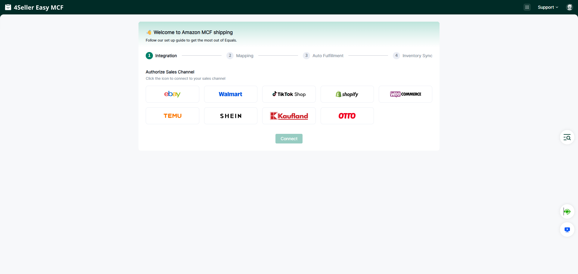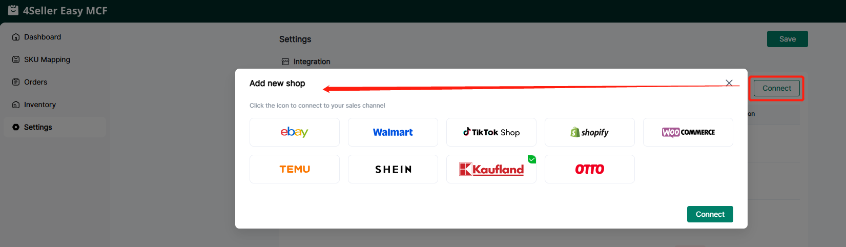 Entrance 1: On the guide page, if you are a new user, you can set up your Sales Channel in the MCF guide Wizard , and click the Kaufland store icon to enter the store authorization page.