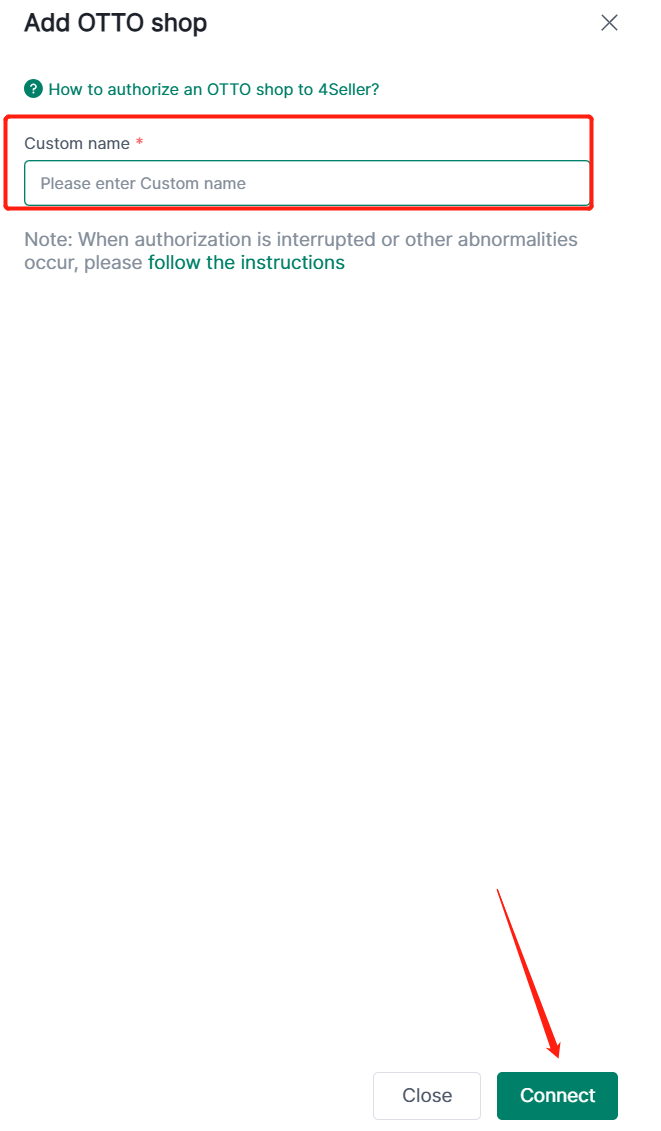 Enter to OTTO suthorize page, fill custome name, click connect.