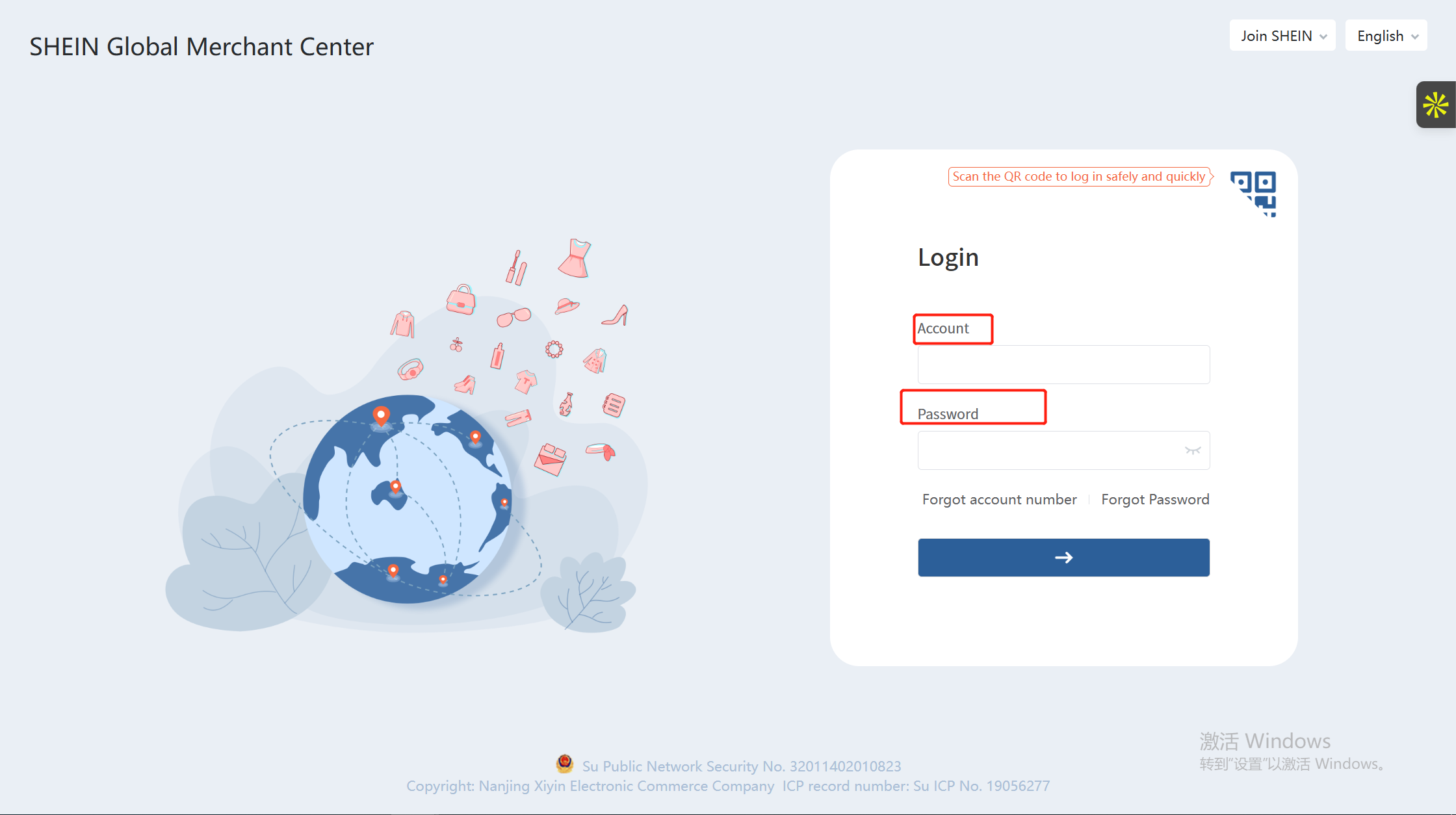 Step two: Enter Shein log in page--Fill Account and password info--log in