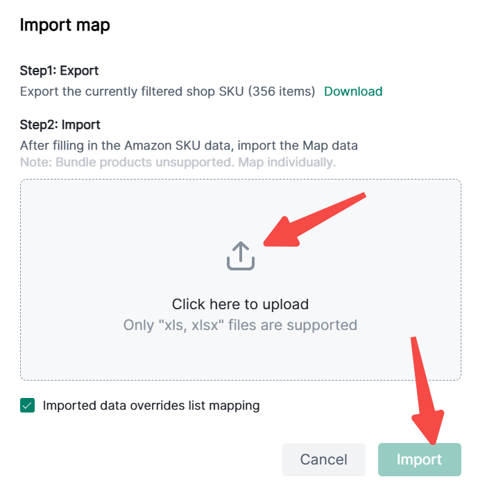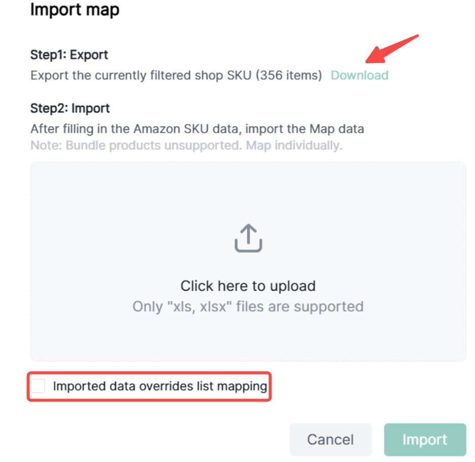 (1)Click SKU Mapping-Import map