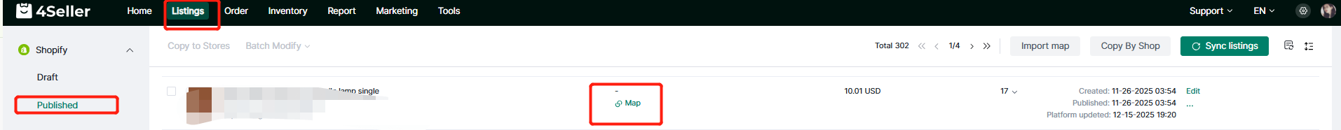 Same in the Shopify page: listing--Shopify--Published--Map Same Stock as which map in the Amazon FBA
