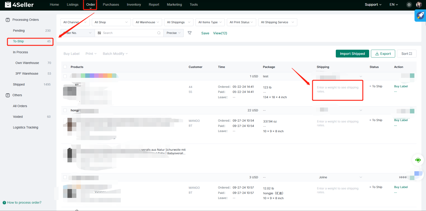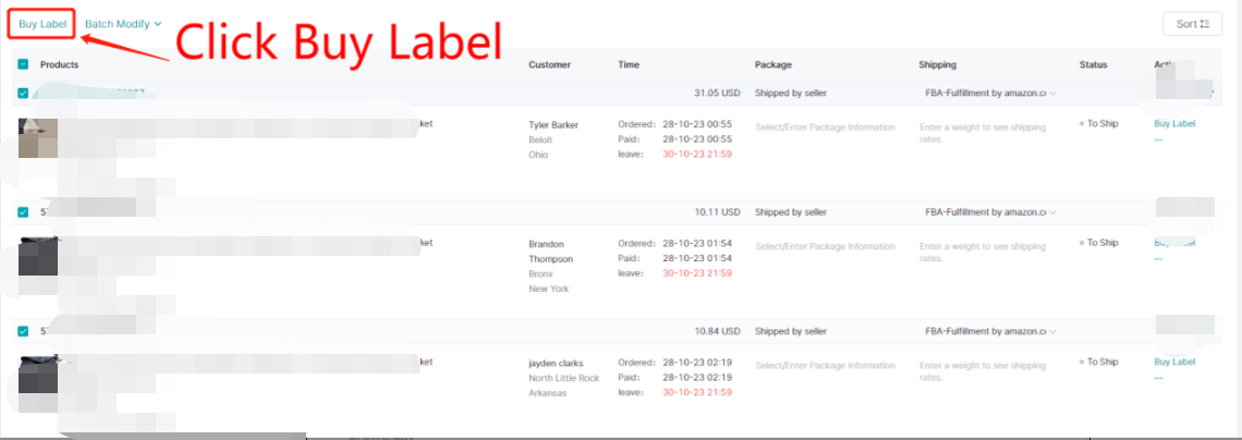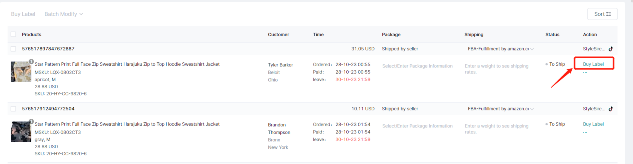 Simply click on the Buy Label of the order to enter the corresponding Buy Label page of the order.