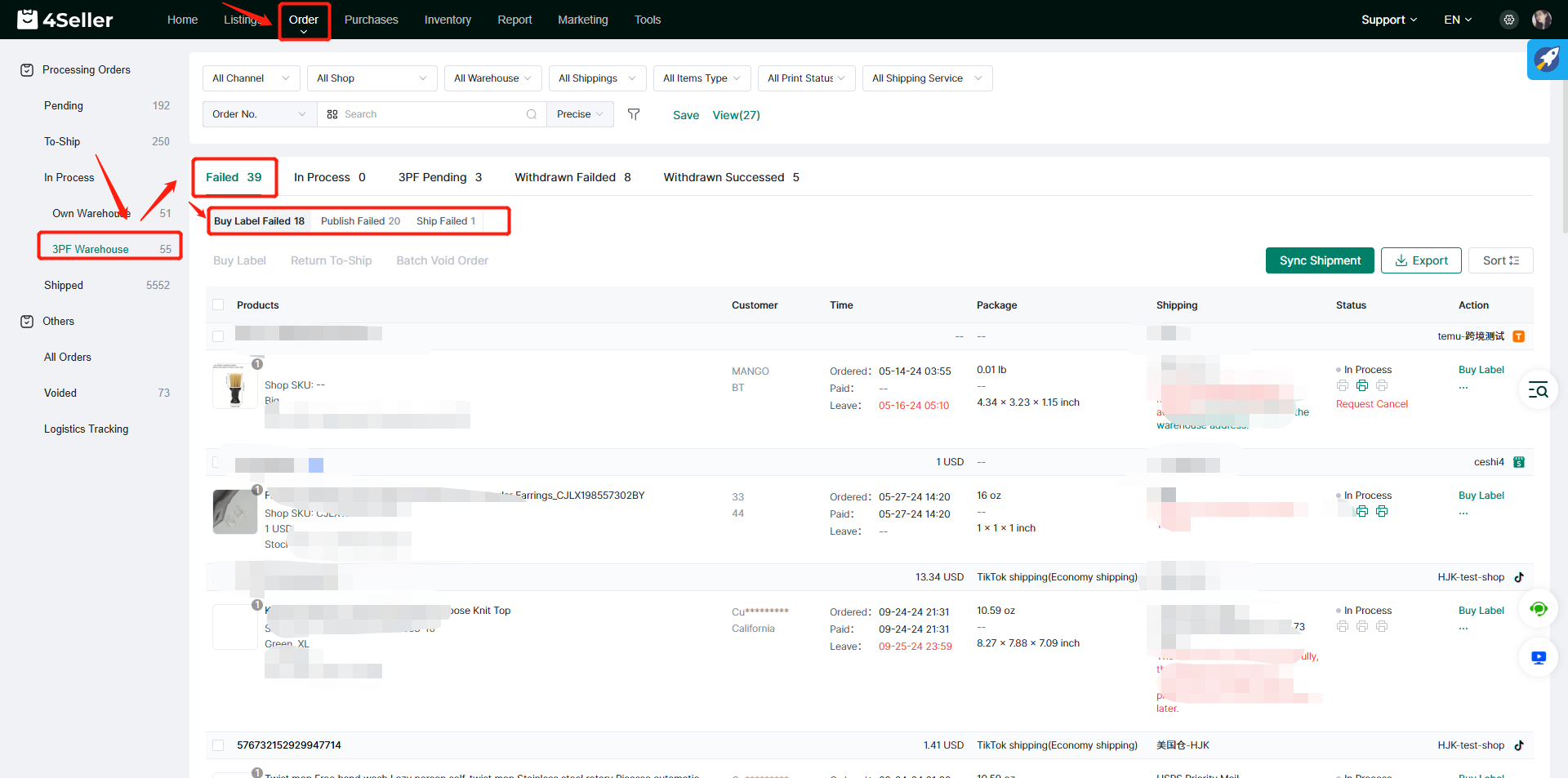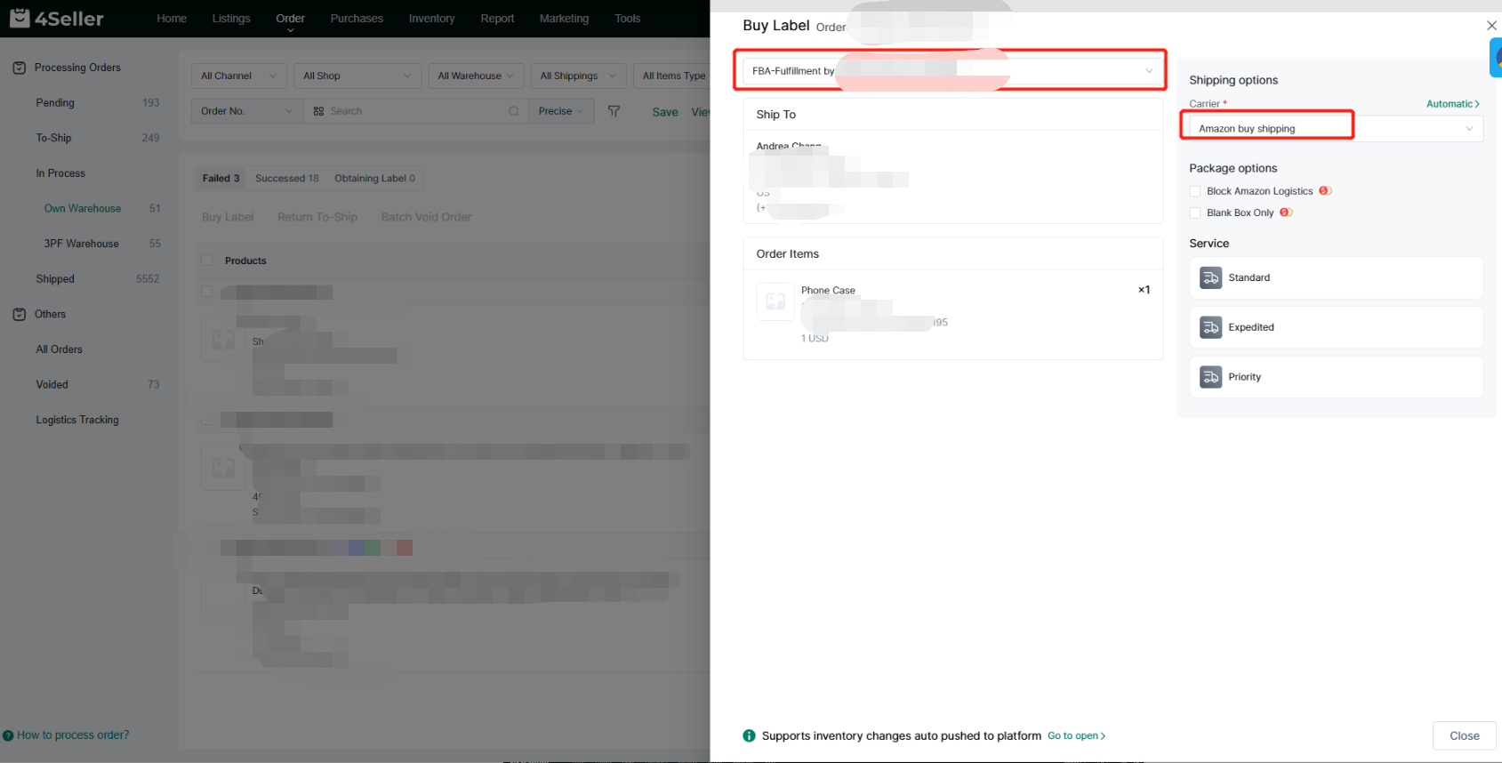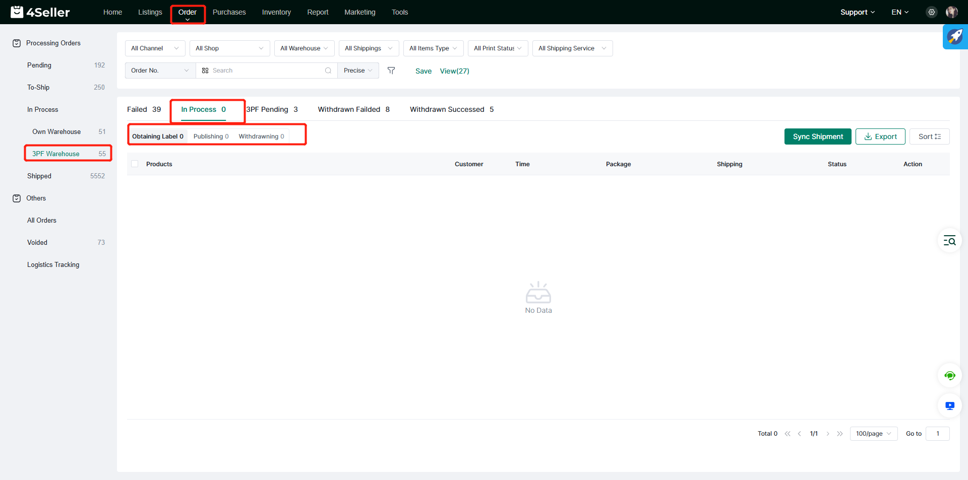 Then click Buy Label to purchase Label in bulk, and the orders will enter the In Process status.