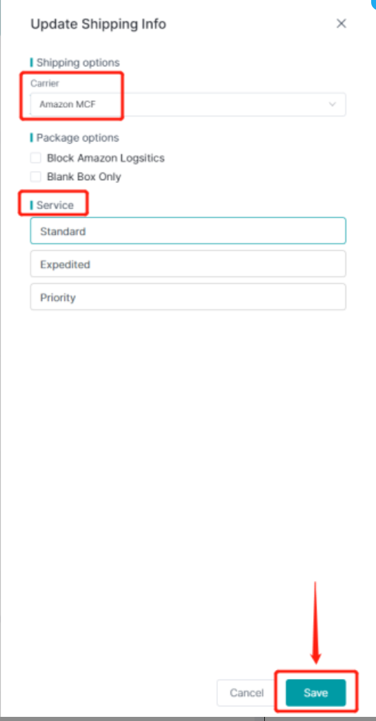 2. Select the corresponding Shipping Carrier.