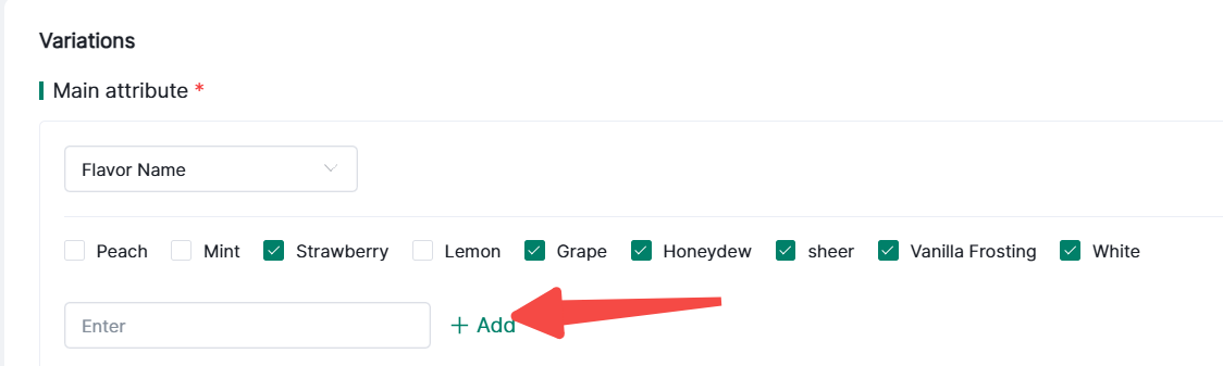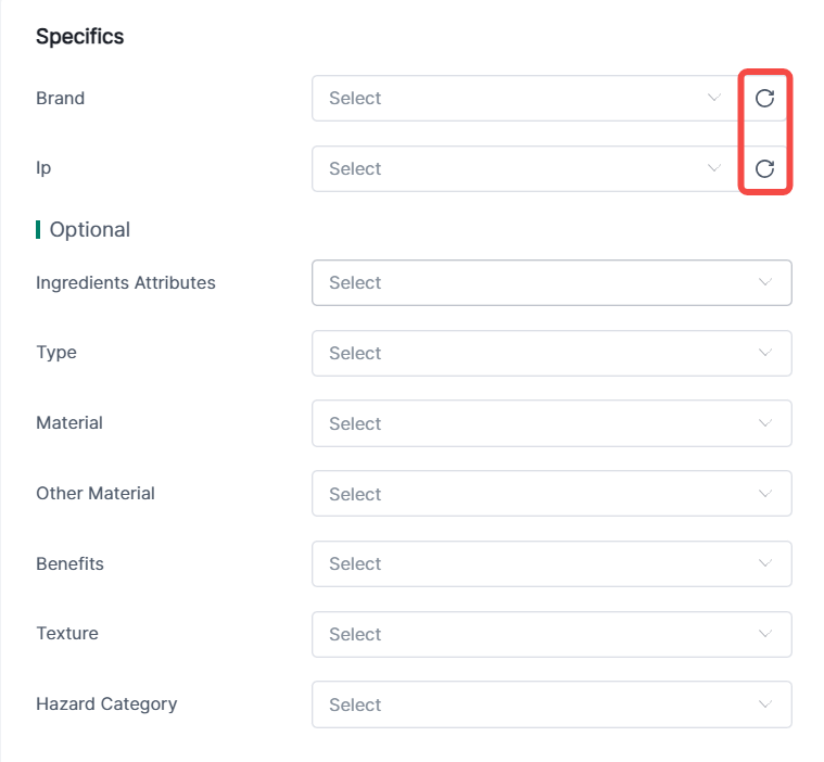 ① Main Specifications: Required field. Items marked in red are mandatory attributes. Click “Add Custom” to add additional attributes.