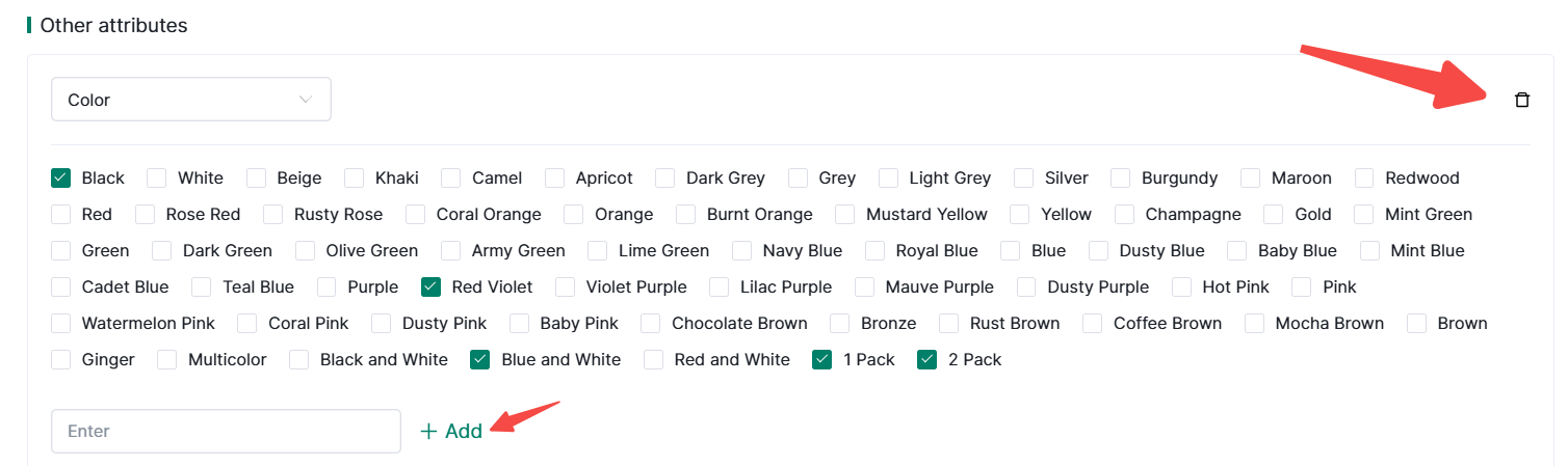 ② Other Specifications: Items marked in red are mandatory attributes. You can add custom attributes or delete them as needed.