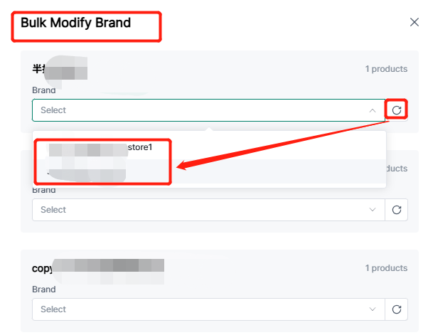 (1) Store Information: Use the dropdown menu to select the store you want to list products for. After selection, the sites under that store will be displayed; check the corresponding sites.