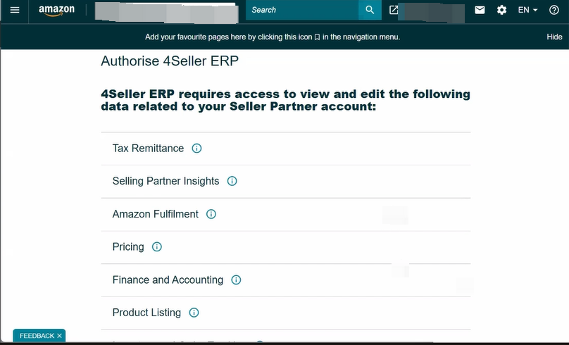 Note 1: If you need to authorize 2 or more Amazon shops, please log out of the already authorized Amazon shop account on Amazon after successful authorization, then log in to the new Amazon shop, and then proceed to authorize it on 4Seller!