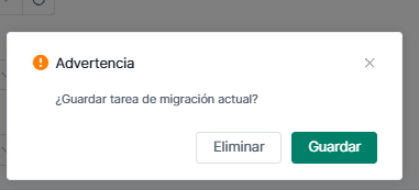 (2) Al seleccionar "No guardar", se cancelará la tarea de migración.