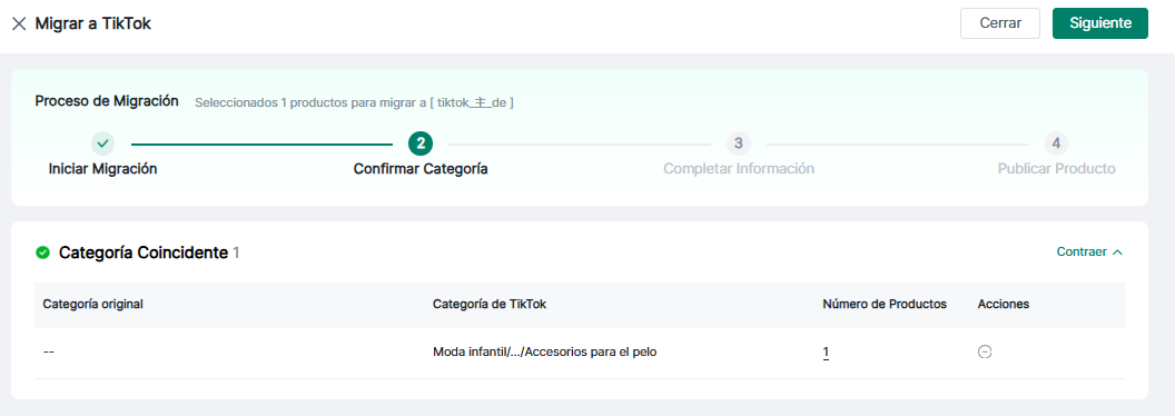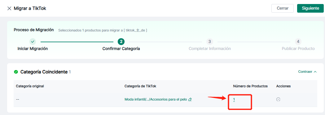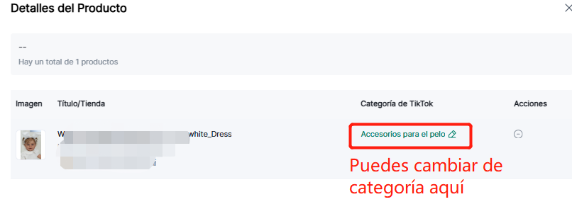 (1) Haga clic en "Ver detalles" para ver las categorías originales y las categorías de destino de TiKTok.