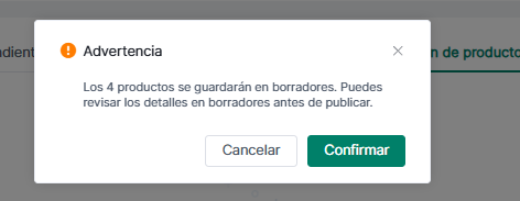 ①. Haga clic en "Confirmar" para guardar todos los productos en modo Borrador. Puede hacer clic para ver el borrador.