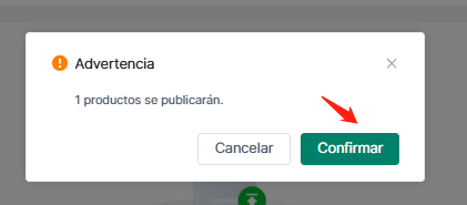 (2) Si no hay productos que requieran información adicional, aparecerá una ventana emergente con la siguiente confirmación: "Se publicarán xx productos publicables. ¿Confirmar?"